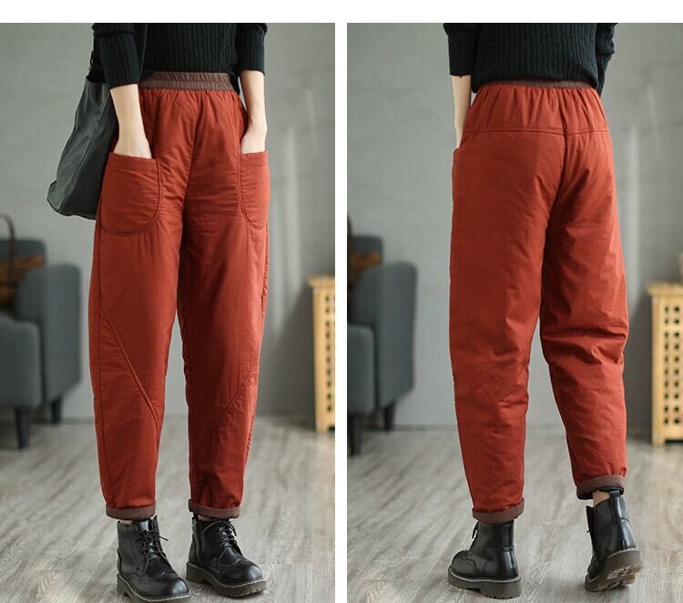 カウンター除去クリアランス最後の在庫女性のレトロな対照的な色のキルティングハーレムパンツルーズハイウエスト肥厚暖かい綿パンツ ハイウェスト コットン sine76166864915