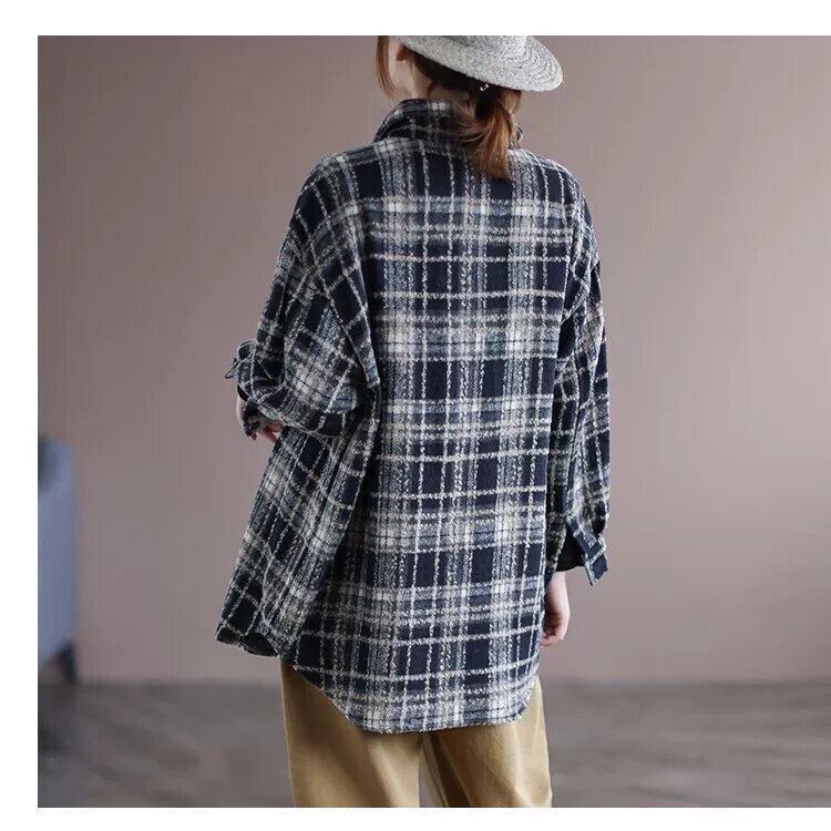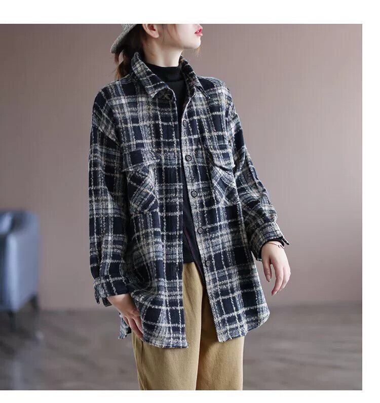 クリアランスクリアランスカウンター牛物品除去女性のレトロウールチェック柄シャツ冬ルーズ肥厚ラペルカーディガンジャケット ウィンター 冬物 sine9910953593