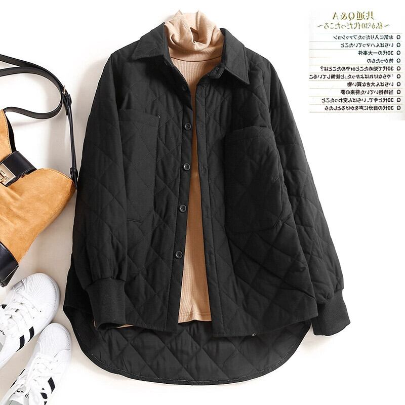 ディスカウントストアショッピングモール撤退女性の厚く暖かいラペルコットンコートレトロルーズキルティング菱形コットンジャケット sine41131185474