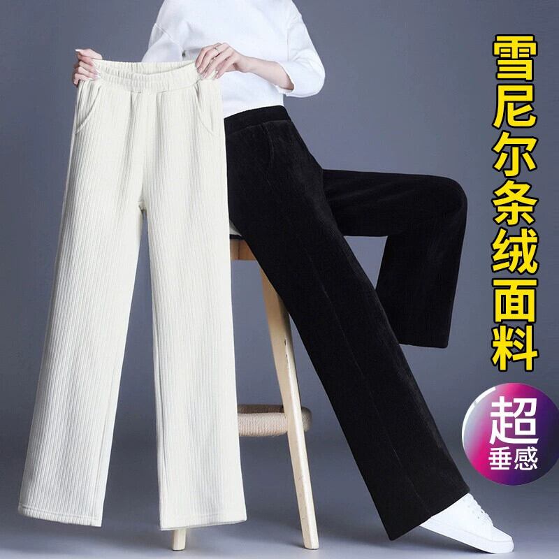 漏れを拾ってください!カウンター引き抜きレディースネパールコーデュロイカジュアルウォームストレートパンツハイウエストプラスベルベットドレープワイドレッグパンツ ハイウェスト ワイドパンツ sine71277349277
