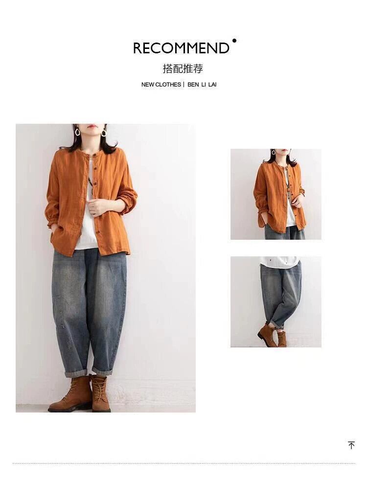 ディスカウントストアショッピングモールの女性の文学的でカジュアルな長袖リネントップルーズスタンドカラーコットンとリネンのシャツジャケット ロング sine34312514154