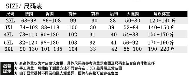 サイズ:2XL[推奨体重90~120ポンド],3XL[推奨120-140kg],4XL[推奨140-160kg],5XL[160〜180kg推奨],6XL[推奨180-200kg]