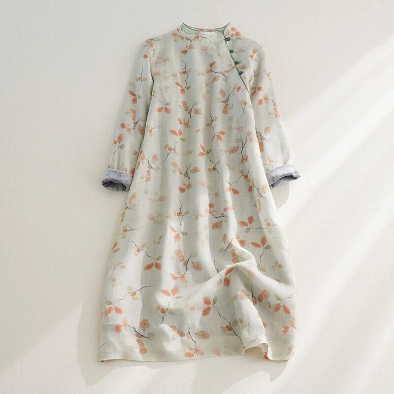 クリアランスカウンター最後の在庫女性のエスニックスタイル花チャイナロングドレスルーズベルベット肥厚ドレス冬 ウィンター 冬物 花柄 sine54495403410