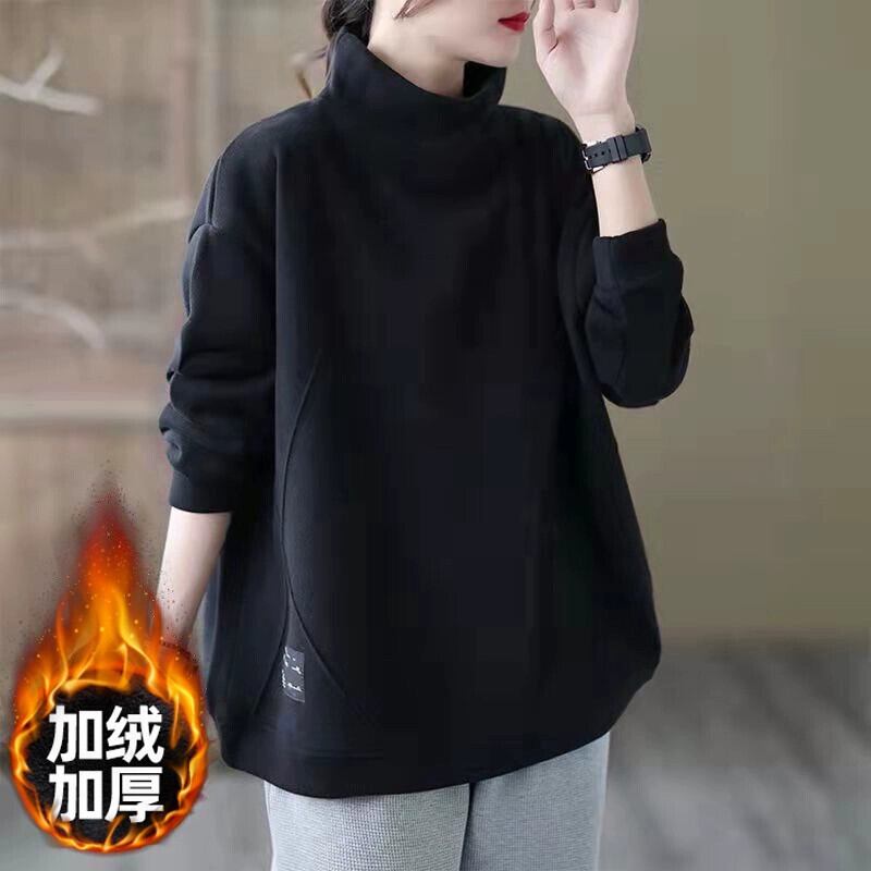 eign trade counter ブランドテールグッズ女性のソリッドカラー多用途プラスベルベットタートルネックスウェットシャツ冬ルーズ痩身肥厚プルオーバートップ ウィンター 冬物 sine95493411853