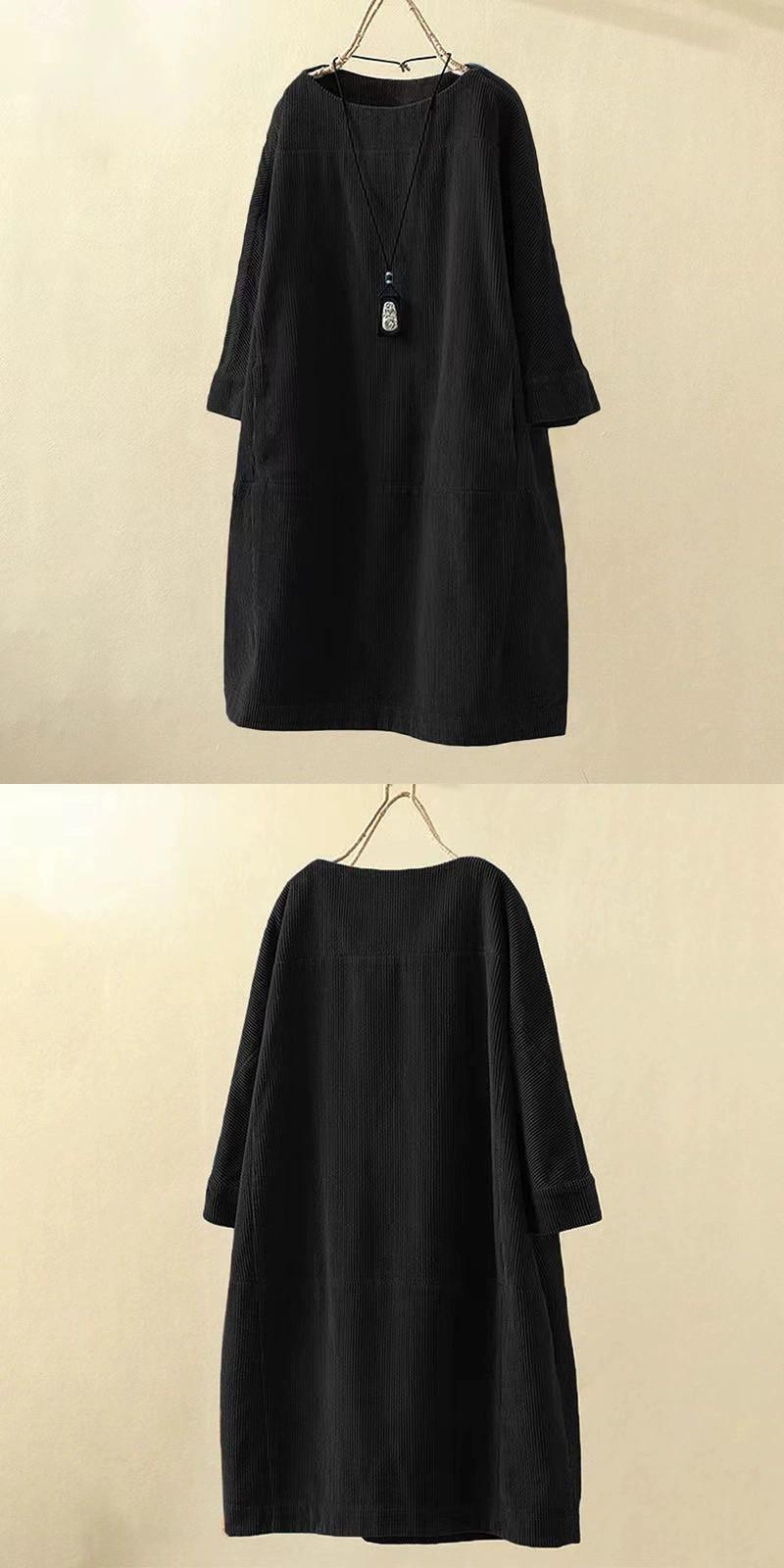 クリアランス漏れ~既製品レディースレトロコーデュロイAラインミモレ丈スカート、ゆったり大きいサイズコーデュロイ長袖ワンピース ロング 大きめサイズ sine76753152977