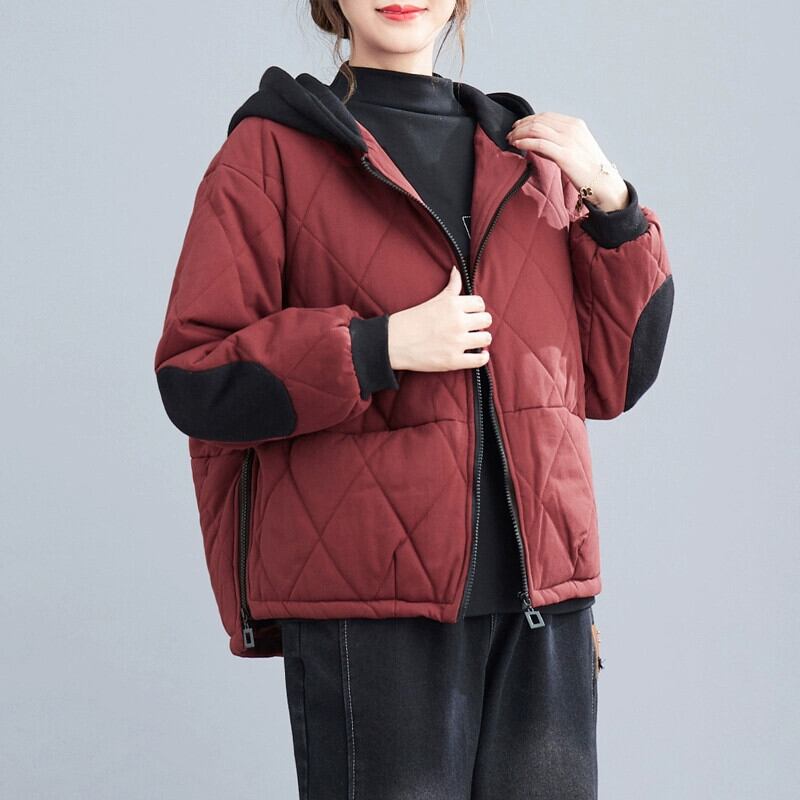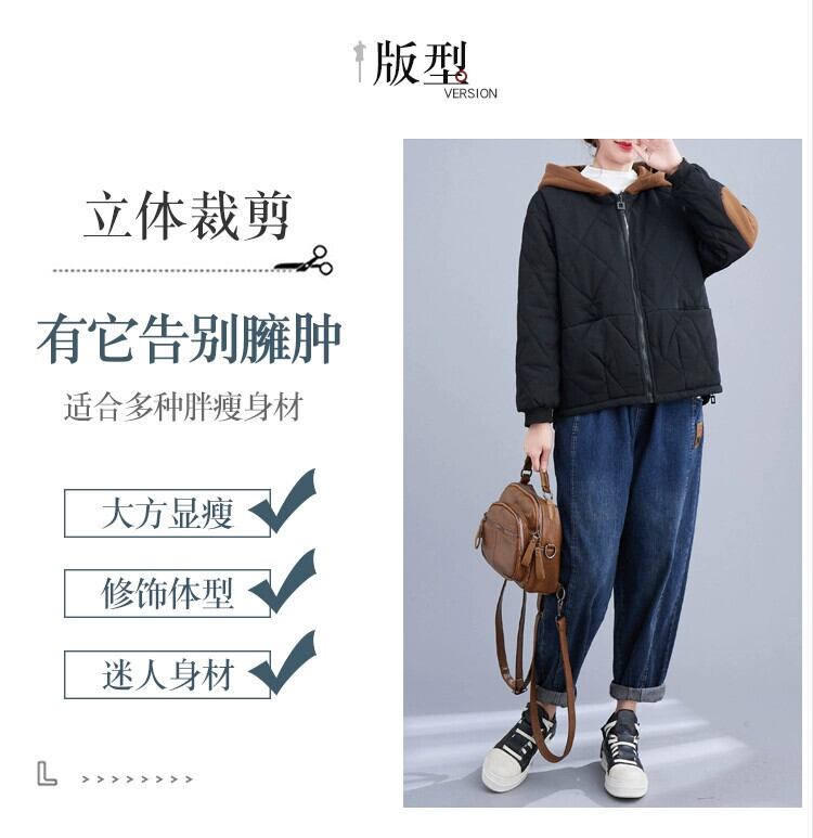 eign trade 割引ブランドテールグッズ女性のレトロパッチキルティングフード付きコットンコート冬ルーズ肥厚暖かいコットンコート ウィンター 冬物 sine83486598707