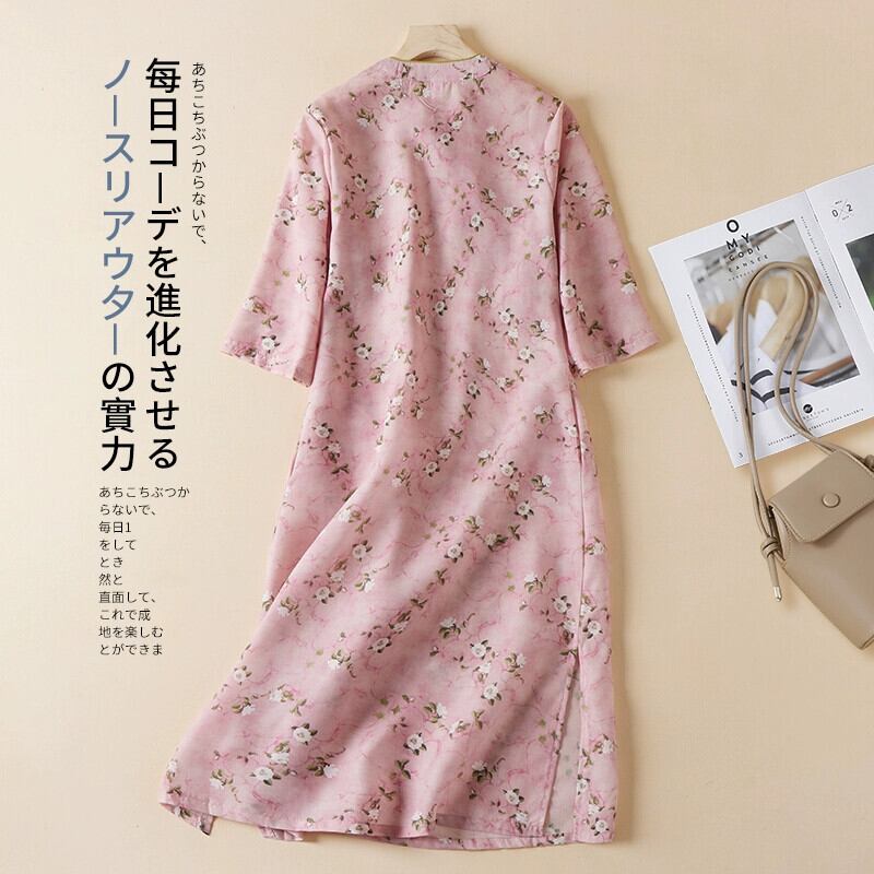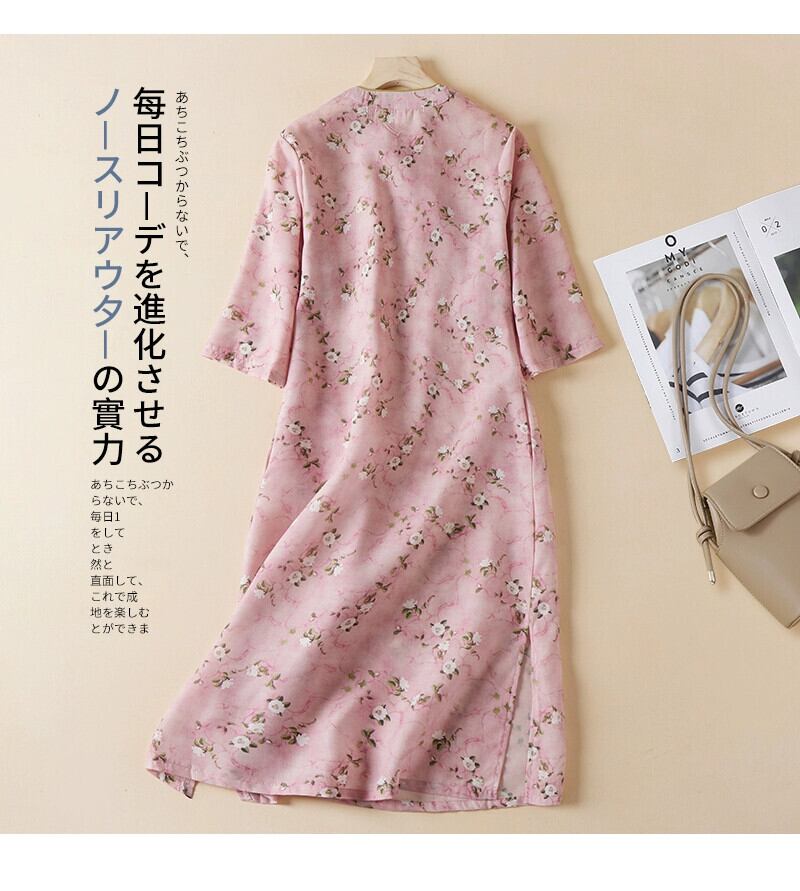 クリアランス漏れ〜カウンターからのレトロなラミーの花柄ドレス、文学的で国民的なスタイルの綿とリネンのチャイナドレス コットン sine13793912004