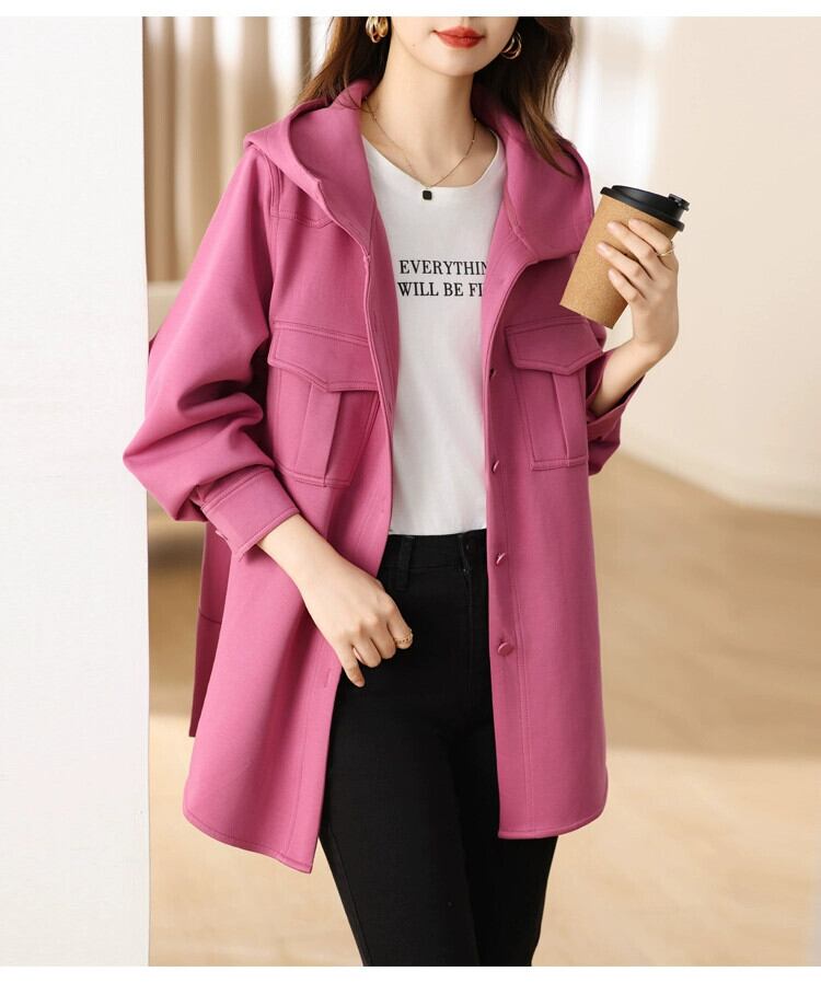 Eign Trade Counter ブランドテールグッズスタイルルーズフード付きコート女性の秋と冬のファッション気質ウインドブレーカーミッドレングストップ オータム 秋物 ウィンター 冬物 sine14196547649