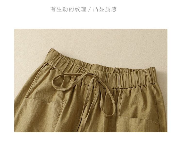 クリアランスリーク〜eseオリジナルのレトロな綿とリネンのワイドレッグパンツの女性、緩いドローストリングハイウエストカジュアルリネン9点パンツ コットン sine86030666128