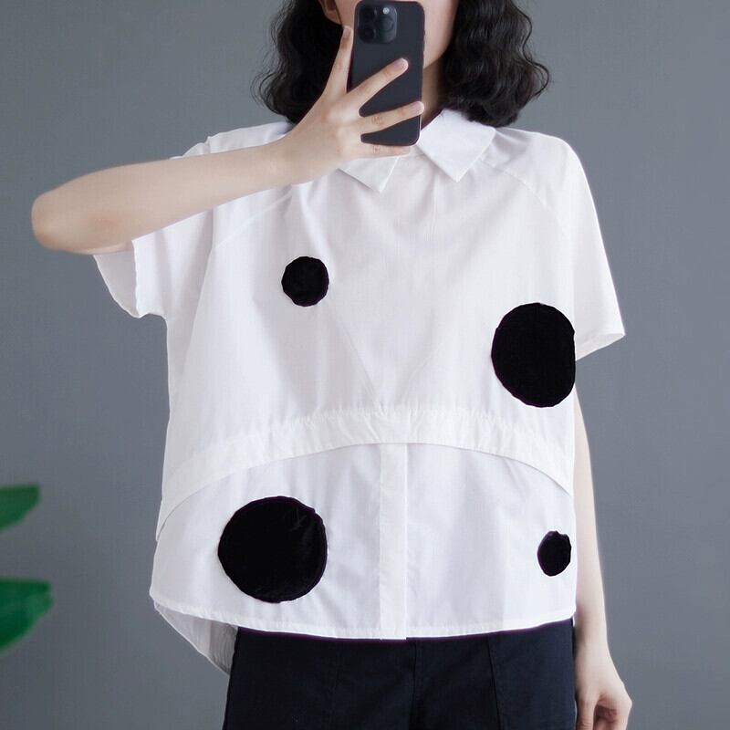 カウンター在庫処分品 水玉プリント半袖シャツ レディース ゆったり 大きいサイズ ドールカラー シャツ トップス 大きめサイズ sine25924660451