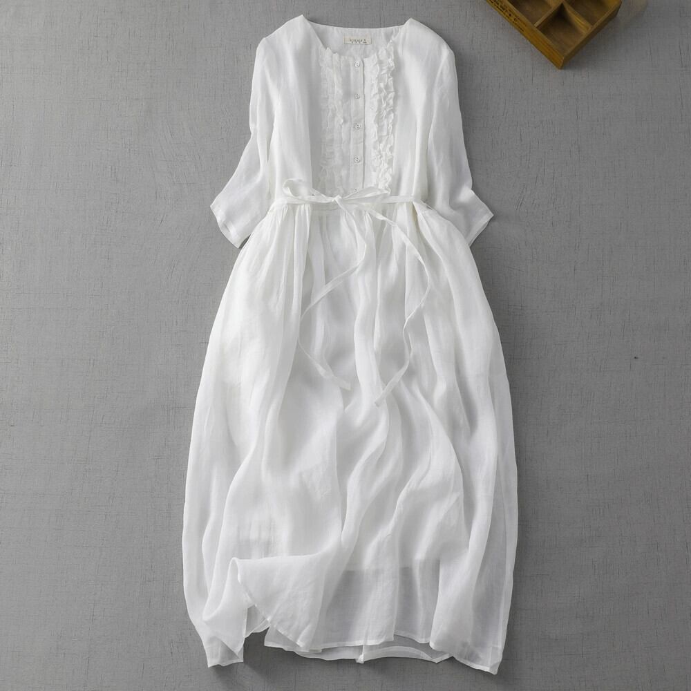 キャトルクリアランスハイエンドテールグッズ女性エストスタイル菌エッジ綿とリネンのドレスウエストレースアップリネンスカート コットン sine71412971041