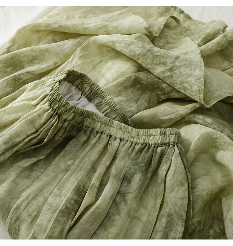 ディスカウントストアショッピングモール絞り染めプリントコットンとリネンスカート女性ハイウエストリネンAラインスカートと大きな裾 sine95168327863