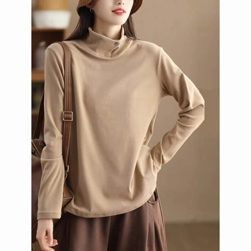 eign貿易輸出ブランドテールグッズ両面ドイツベルベットハーフタートルネックボトシャツ女性ルーズカジュアルインナーtシャツトップ sine89248862030