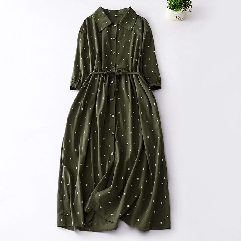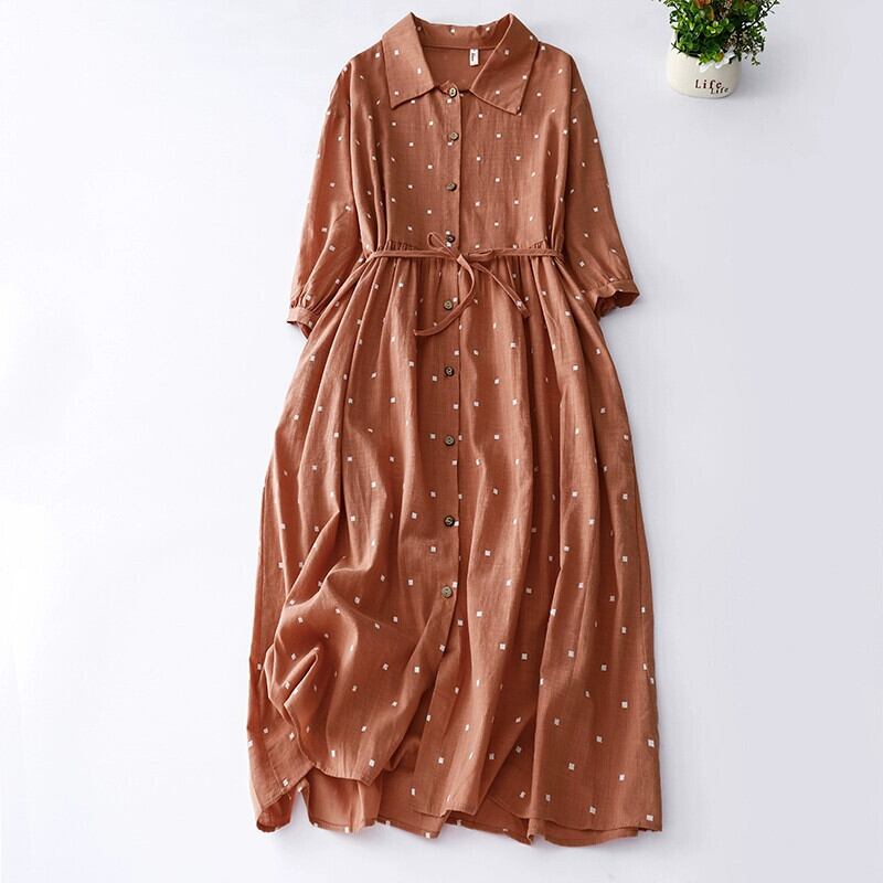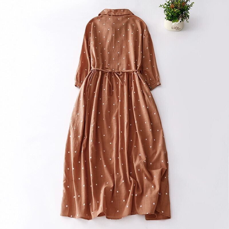 クリアランス クリアランス カウンター 牛グッズ 取り外し レディース コットンとリネンの水玉模様のシャツドレス ルーズ ウエスト タイ リネン ロング スカート sine49713048585