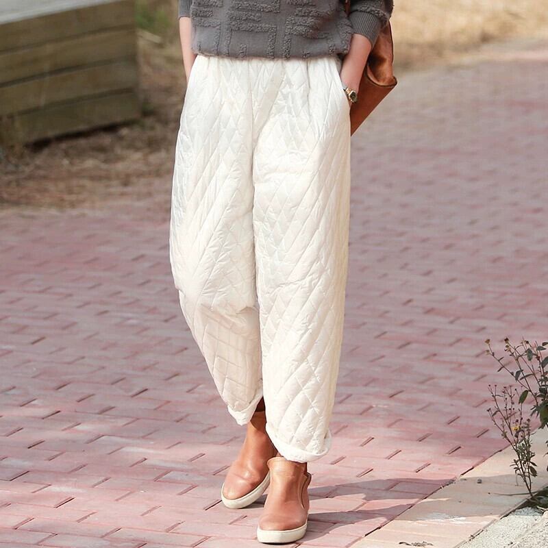 クリアランスリーク〜カウンター最終在庫レトロ菱形キルティングハーレムパンツレディース伸縮性ウエスト、厚みのあるライトダウンコットンパンツ エラスティック sine82668826624