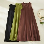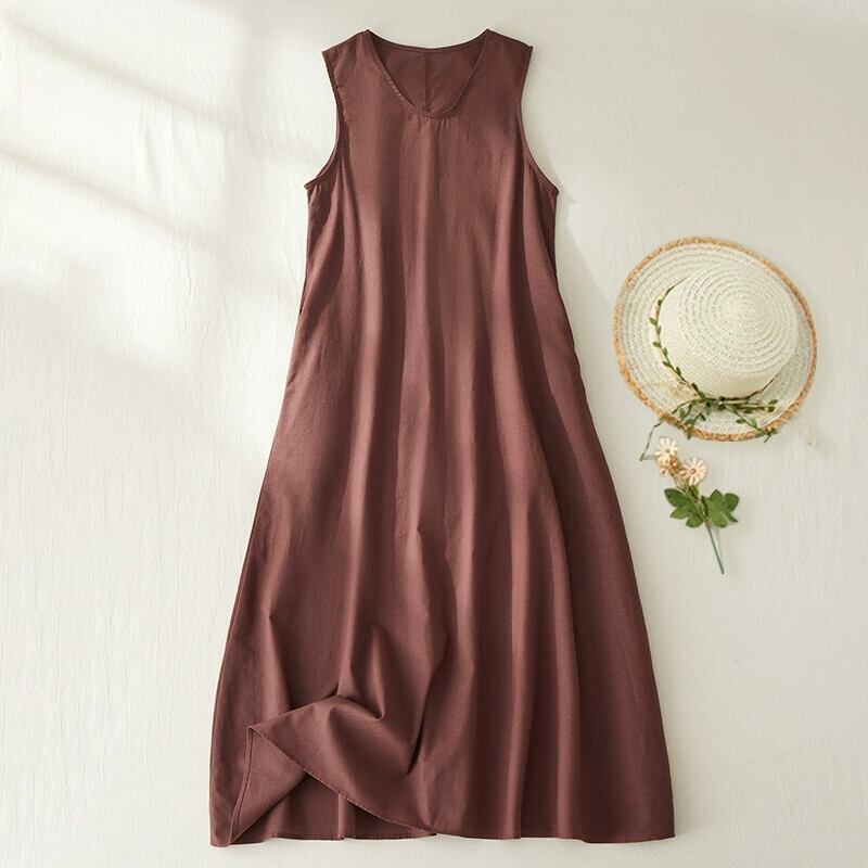 クリアランスリーク〜レディース最終在庫レディースコットンとリネンのノースリーブベストドレス、ルーズスリミングリネンサスペンダーミッドレングススカート sine94707783255