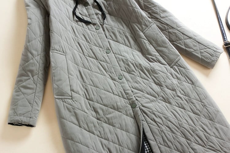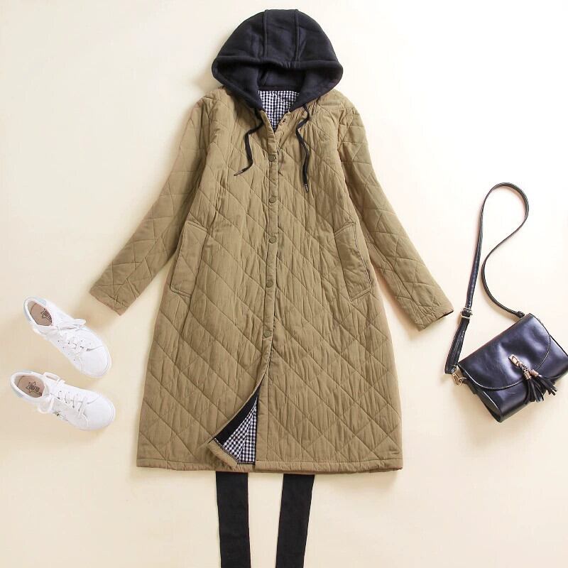 ショッピングモールの有名人がカウンターから撤退、レトロな厚みのあるフード付きコットンジャケットの女性、ルーズキルティングミッドレングスのコットンジャケット sine99881107493