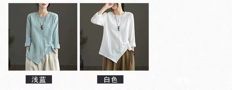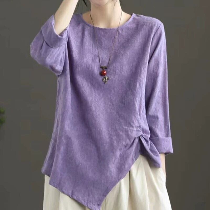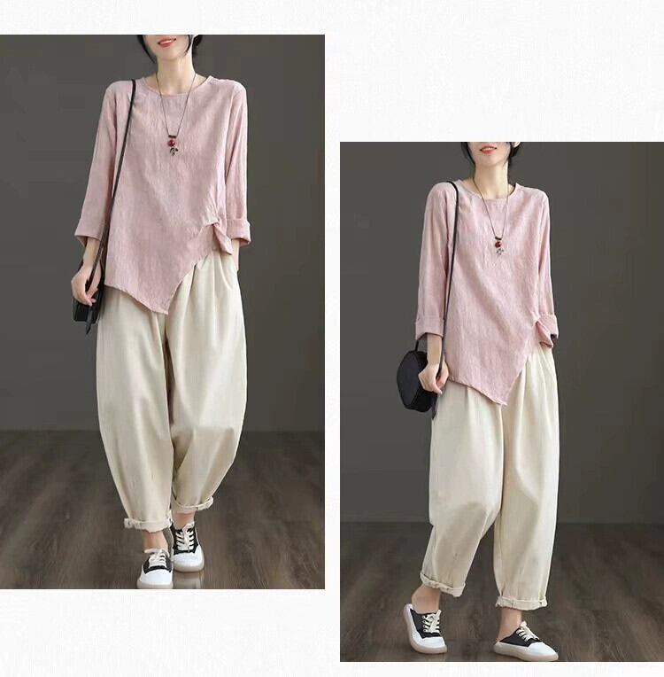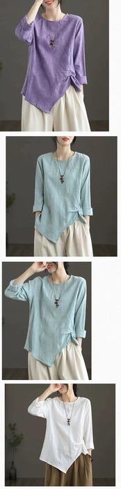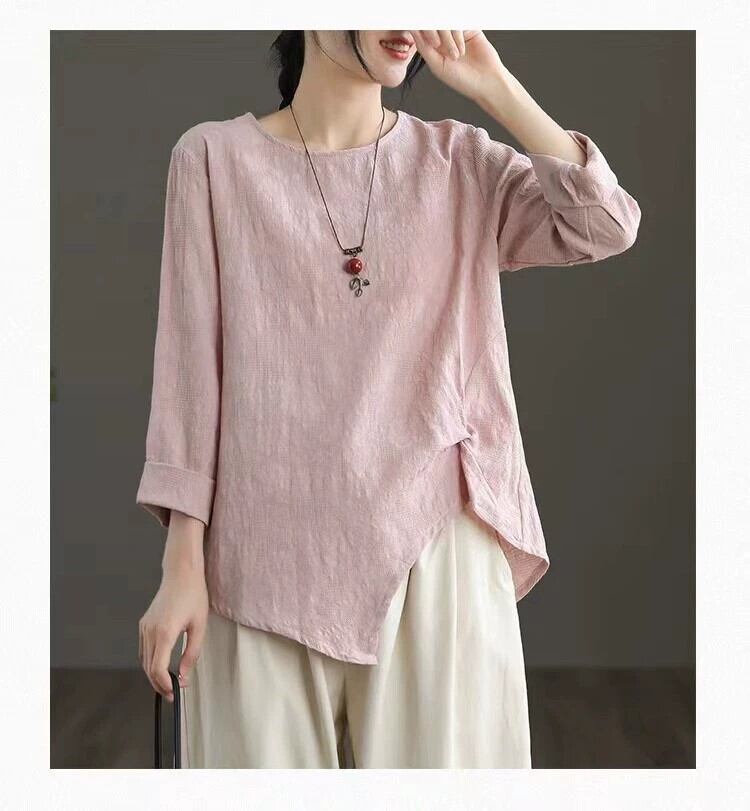 eign trade counter ブランドテールグッズ不規則な綿とリネン長袖 Tシャツ女性のレトロなルーズリネンボトリングシャツ秋 ロング コットン オータム 秋物 sine84236506016