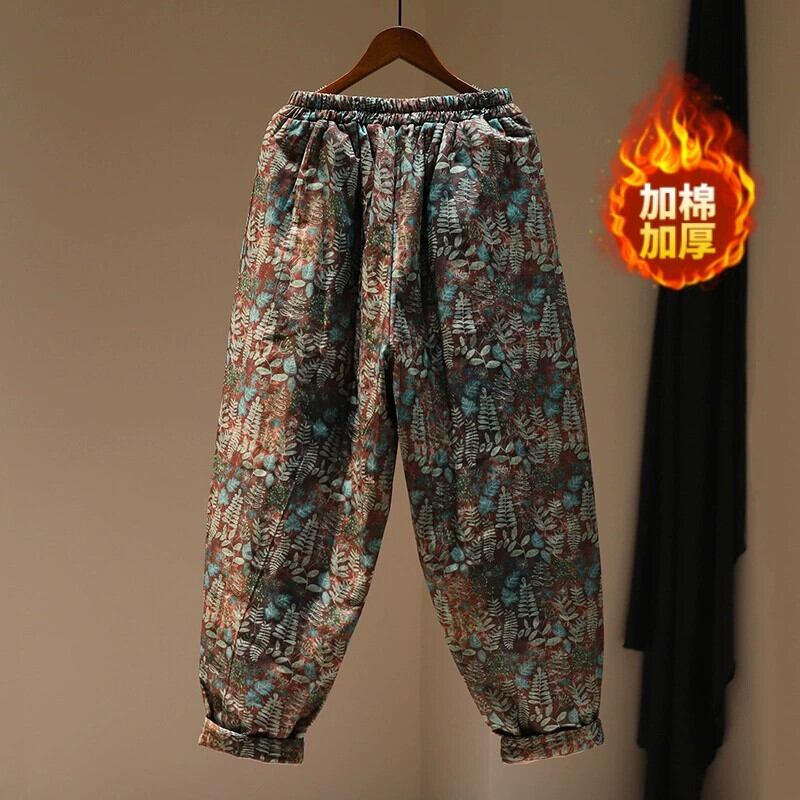 クリアランスカウンター最後の在庫レトロキルティング花柄コットンパンツレディースルーズハイウエスト肥厚脚ハーレムパンツ sine93695341020