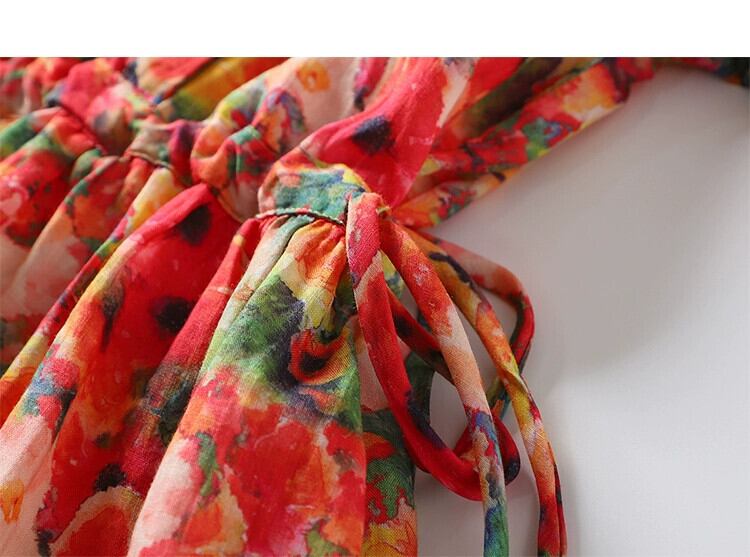 eign trade 割引ブランドテールグッズ女性 est リネン花柄ドレスルーズウエスト半袖綿とリネンのロングスカート コットン sine72534450535