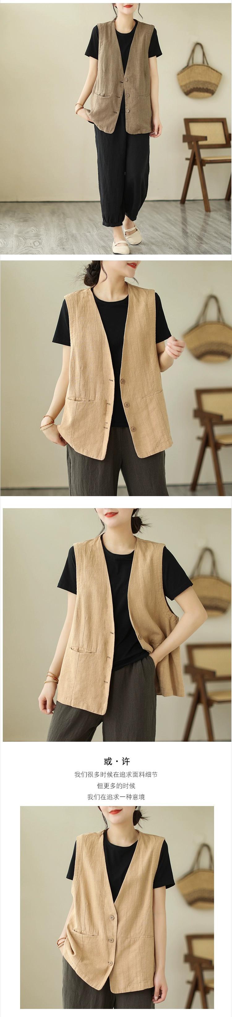 第一線ブランド eign trade 撤退最終在庫綿とリネンのチョッキベスト女性の夏のルーズ V ネックリネンベストトップ コットン サマー 夏物 Vネック sine64877789510