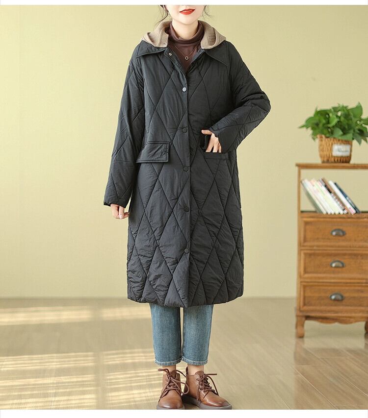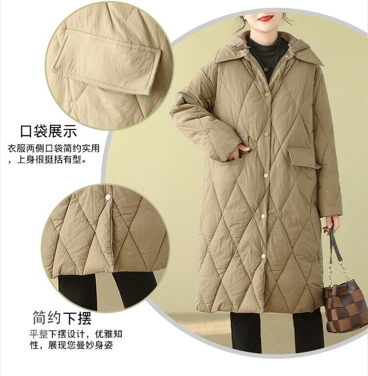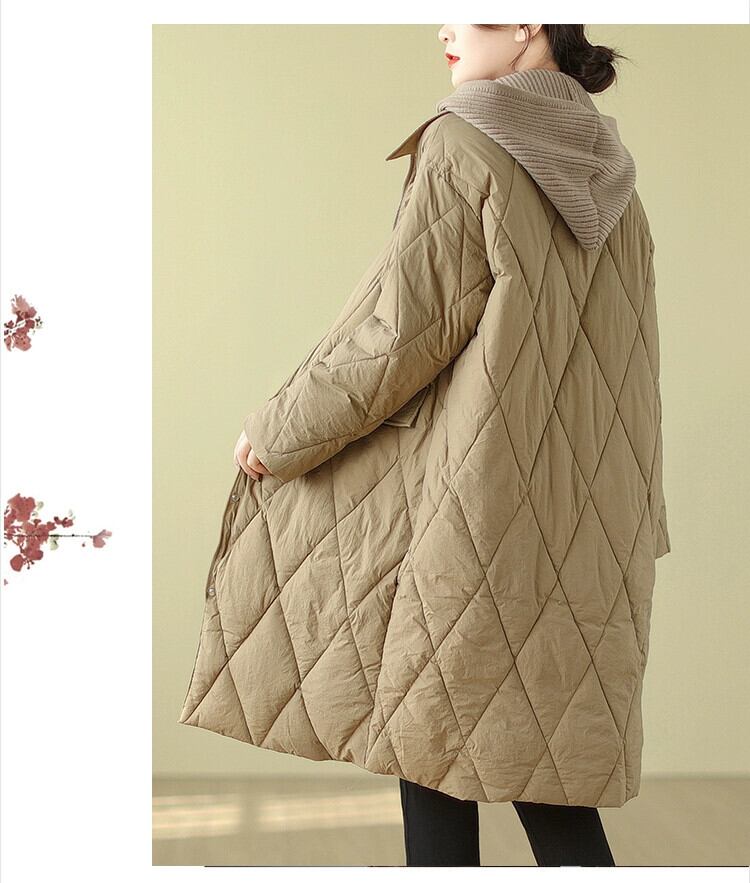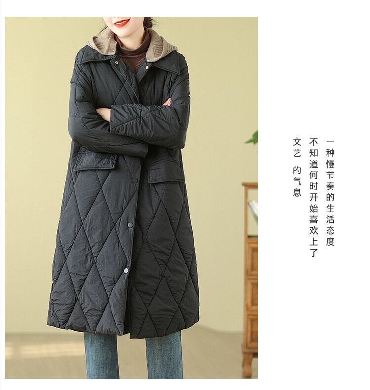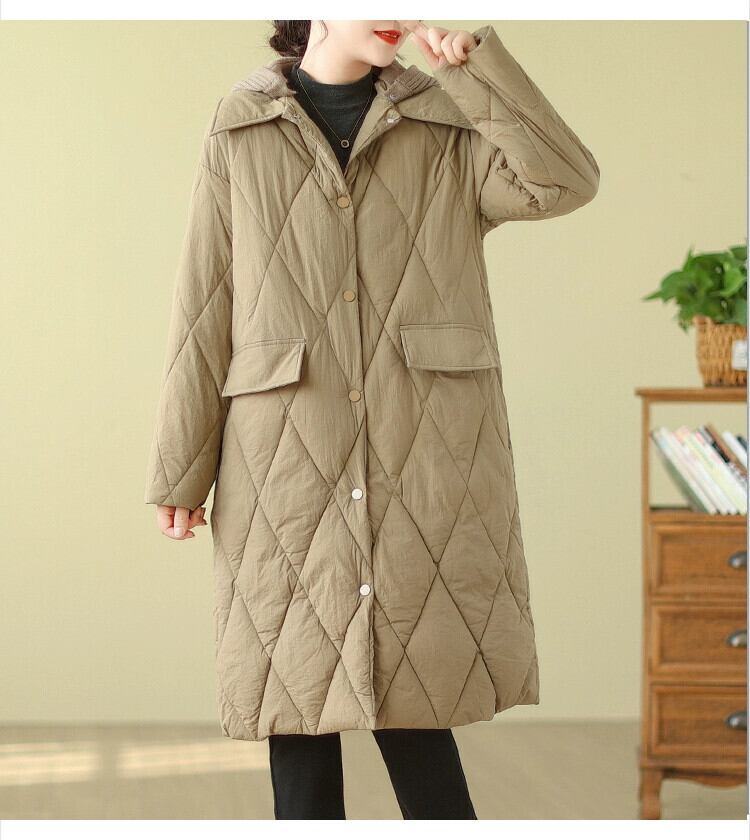 第一線ブランド eign trade がカウンターから撤退、軽くて薄いダウン コットン コート レディース、ルーズ キルティングと厚みのあるミッドレングス コットン コート sine77674330235