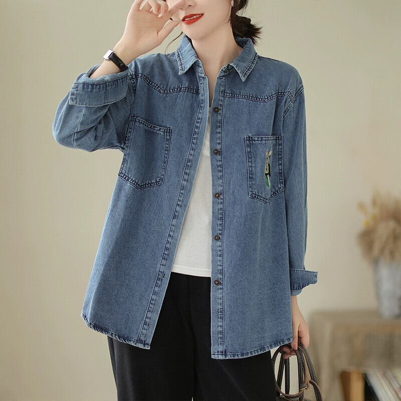 eign trade ese オリジナルシングルビッグネーム撤退レトロデニムシャツジャケットレディースファッショナブルなデザインカーディガンジャケットトップ sine8537376069