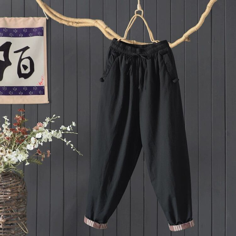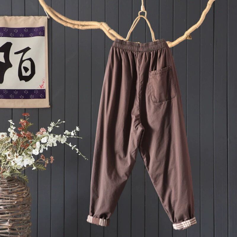 クリアランスカウンター最後の在庫レトロキルティングハーレムパンツ女性のハイウエストドローストリング厚く暖かいアウターコットンパンツ ハイウェスト sine36171062273
