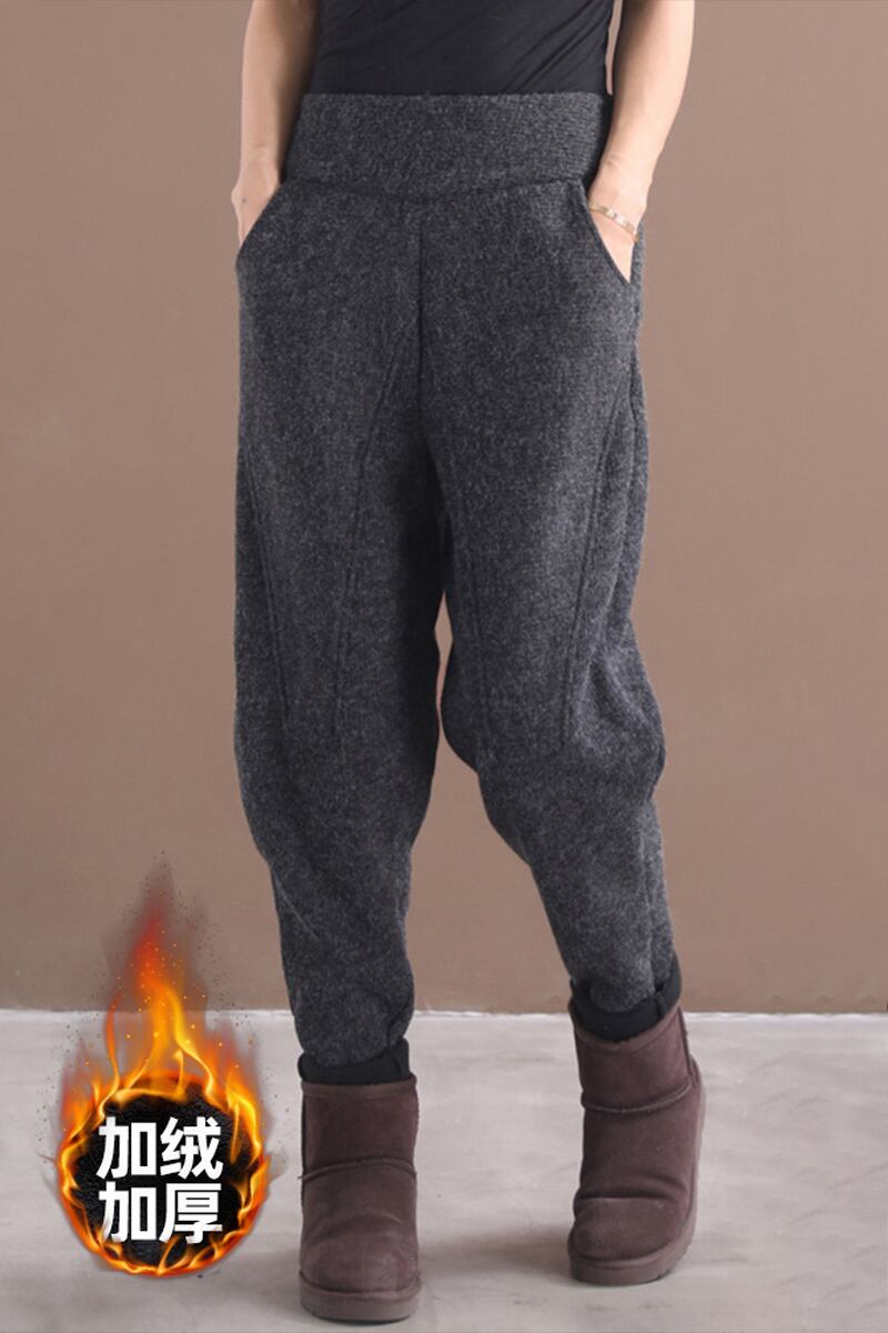 eign trade フレンチラストオーダークリアランスカウンター輸出カットラベルプラスベルベット肥厚パンツアウターカジュアルウールハーレムパンツ女性 sine64702031836