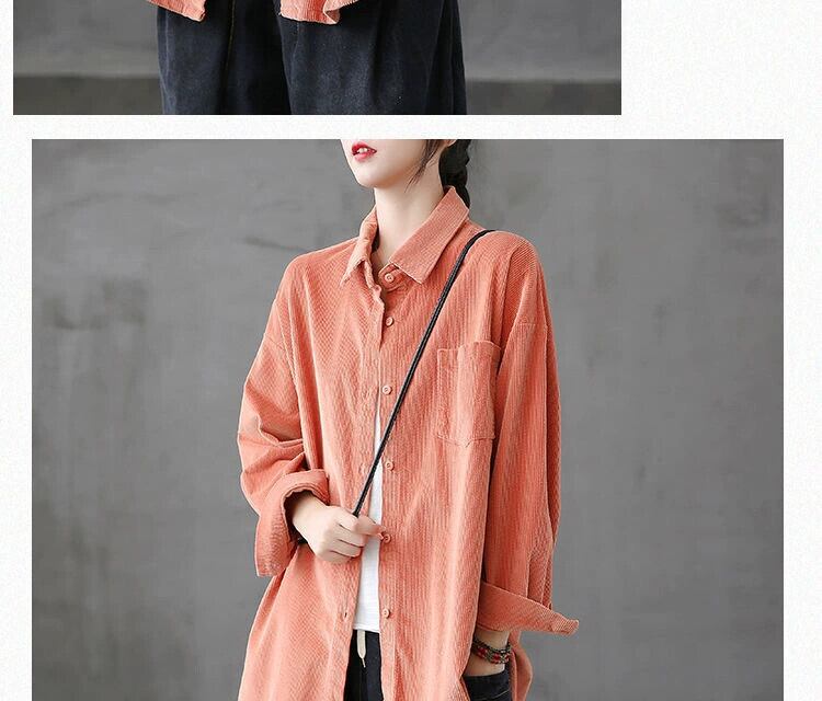 永貿易輸出ラストシングルレディースショッピングモール撤退コーデュロイ長袖シャツレトロコーデュロイジャケットトップ ロング sine4972440033