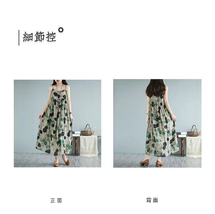 eign trade ハイエンドブランド カットオフコットンリネンサスペンダードレス アーティスティックポルカドット ノースリーブラミーベスト ロングスカート sine42706753470