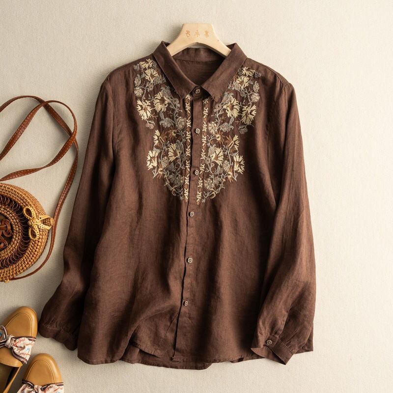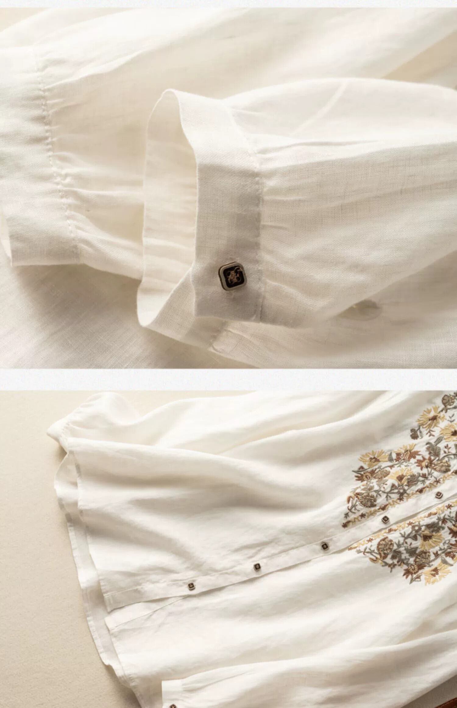 eign trade オーダー フレンチ&イタリアンテールグッズ レディース 仕立て上がり ヴィンテージ刺繍 スリムトップ コットンリネン 長袖シャツ ロング ビンテージ sine53210016949