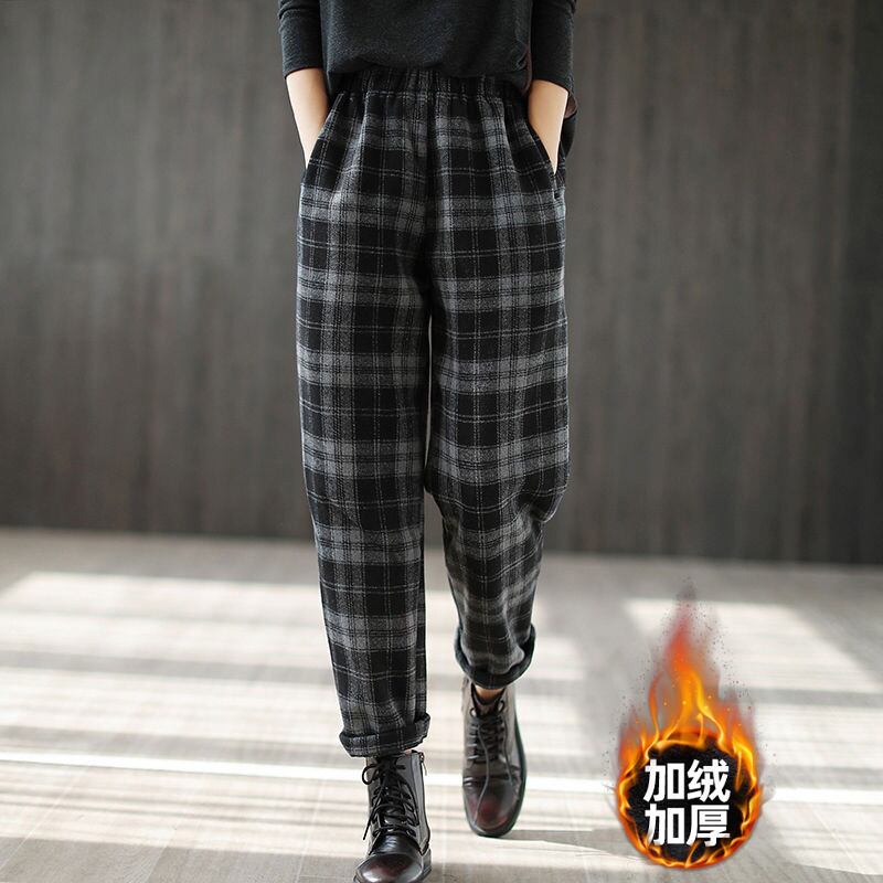 ese and eign貿易カウンター輸出余剰シングルカットラベルレディースクリアランスプラスベルベットラディッシュコットンパンツチェック柄カジュアルウールハーレムパンツ sine19576643805