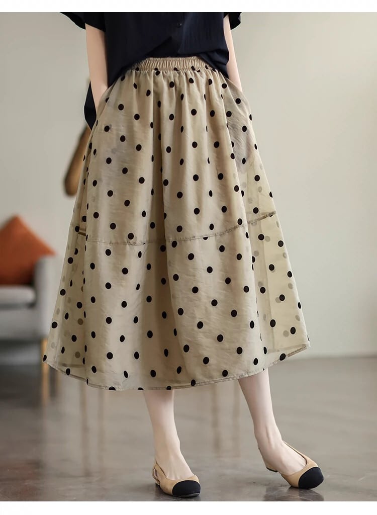 Eign Trade Counter 撤退した女性の軽量二層ラミー A ライン スカート、大きなスカート付きルーズ水玉模様のコットンとリネンのスカート夏 サマー 夏物 Aライン sine38368643334