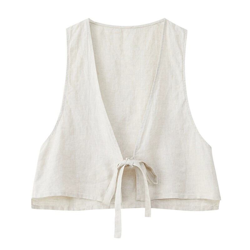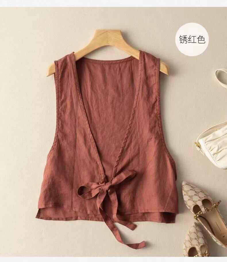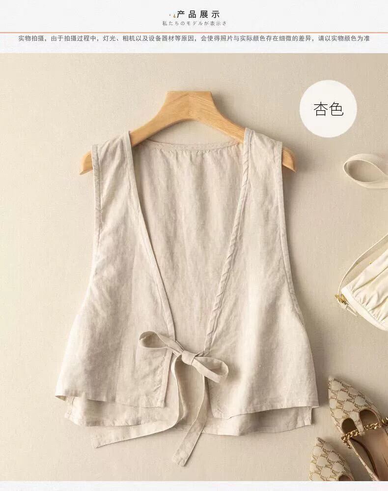 eign trade ラストシングル牛グッズ カットマーク クリアランス クリアランス レディース 綿麻 レースアップ ベスト トップス ノースリーブ リネンベスト ショートジャケット コットン sine19563100728