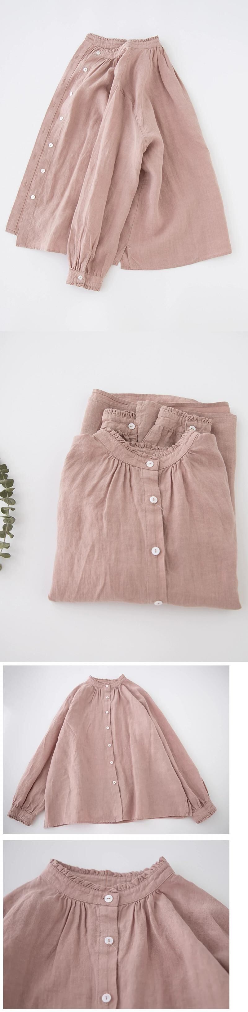 eign trade ese オリジナルハイエンドブランドの女性の文学と芸術の多用途リネンドールシャツトップスタンドカラー綿とリネン長袖シャツ ロング コットン sine95953424453