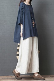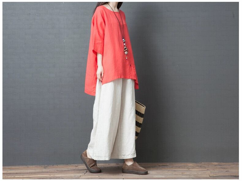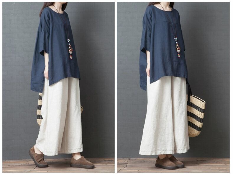 コットンとリネンの女性用スーツ、ミドル丈の半袖 T シャツ トップス、ゆったりとしたプラスサイズの 7 分丈と 9 点のワイドレッグ パンツ、リネンの 2 点セット 大きめサイズ Tシャツ sine45672803217
