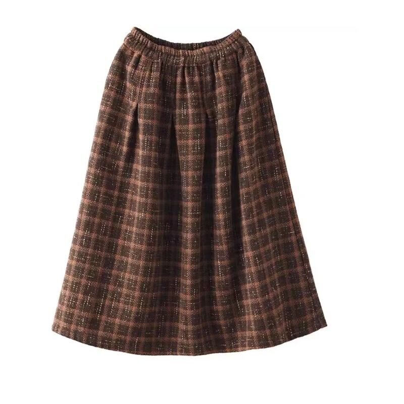 クリアランスリーク〜ハイウエストとスリムな厚みのあるウールのAラインアンブレラスカートを備えたeseオリジナルのレトロなチェック柄起毛スカートの女性 ハイウェスト sine35213647694