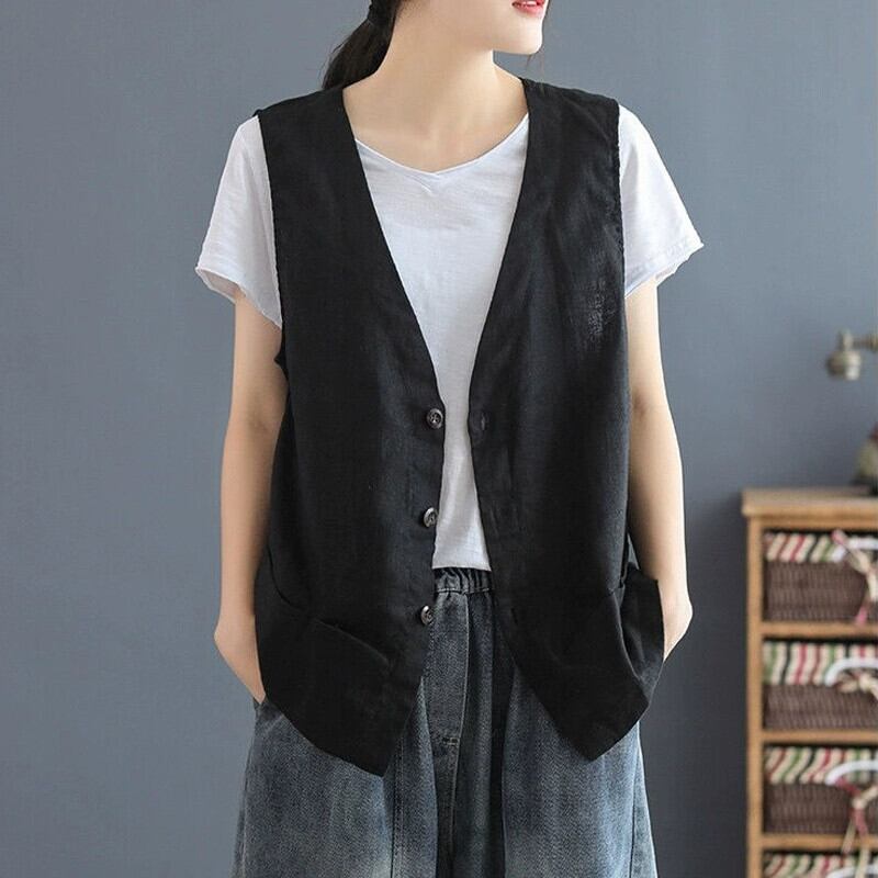 ese オリジナル eign trade 有名な女性の無地リネンベストトップルーズ薄い V ネックノースリーブ綿とリネンのベスト夏 コットン サマー 夏物 Vネック ソリッドカラー sine71733031166