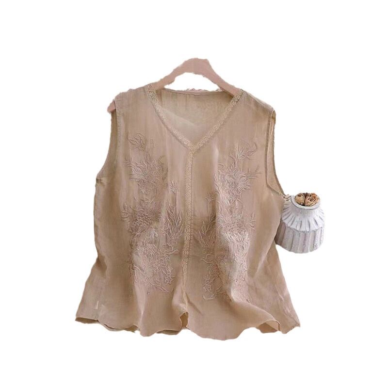 eign trade 輸出ブランド テールグッズ レディース 刺繍 刺繍 リネン ノースリーブ トップス ゆったり Vネック インナー キャミソール 薄手 レッド sine92961458675