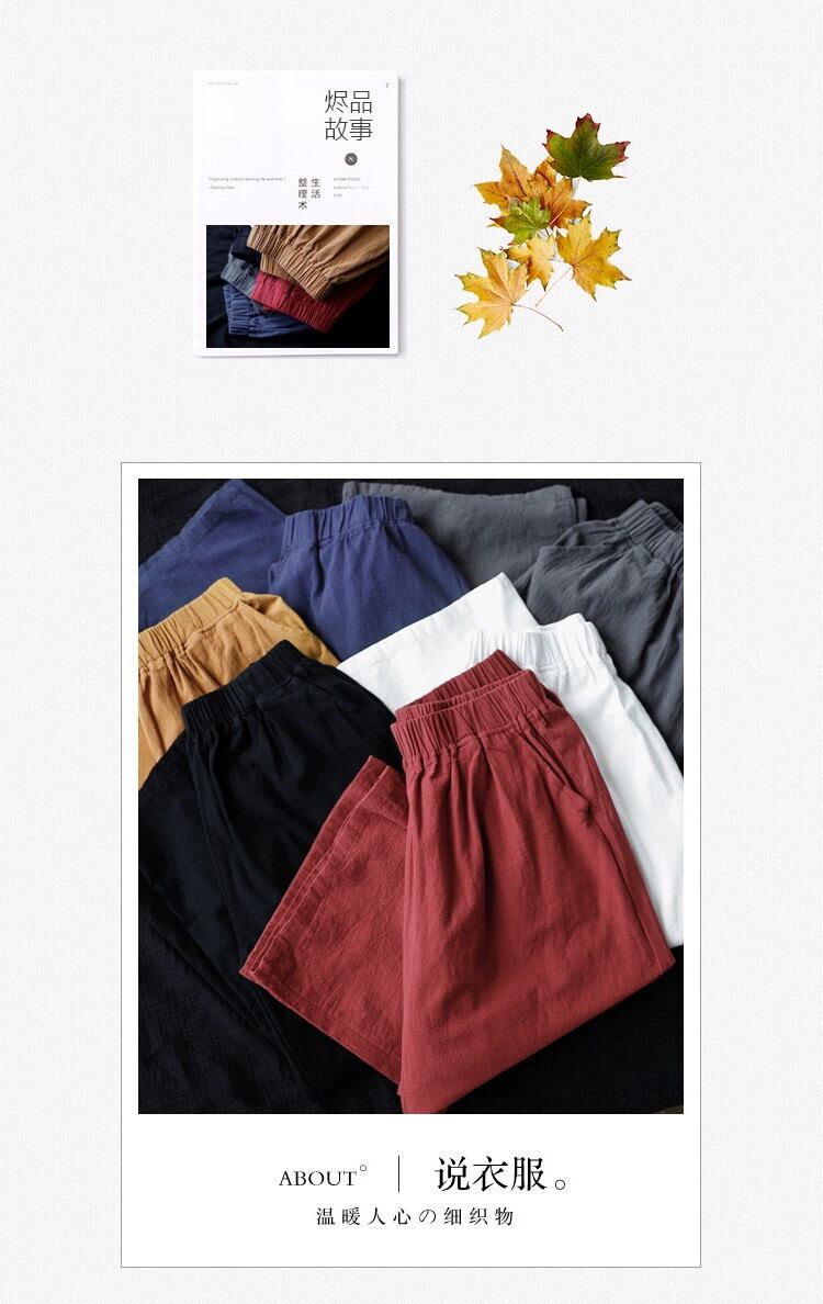 コットンとリネンのワイドレッグパンツレディース、ゆったりとしたプラスサイズのレディースクロップドパンツ、スタイル多彩な学生カジュアルストレートレッグリネン9ポイントパンツ 大きめサイズ sine80607337428
