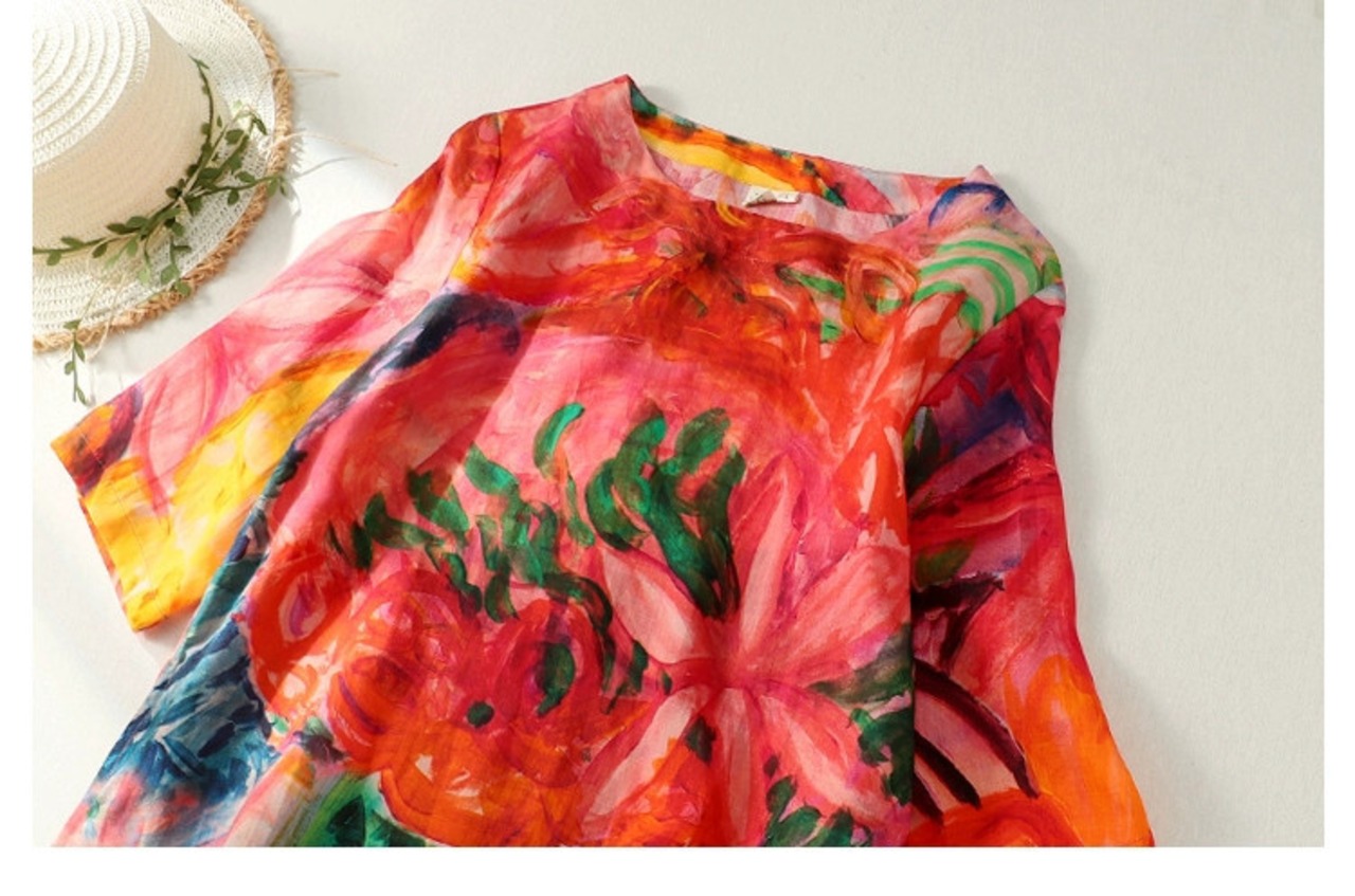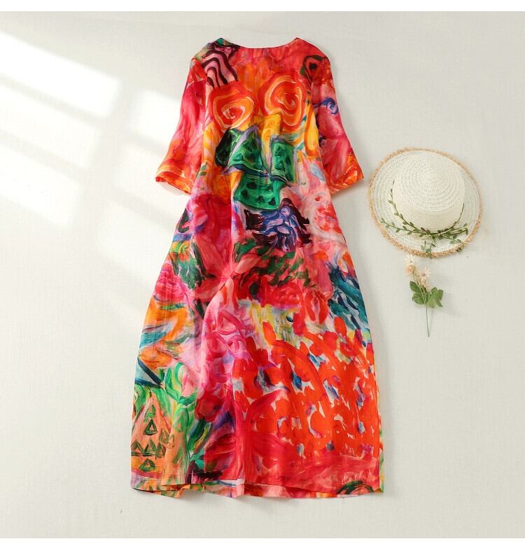永貿易輸出ビッグブランド尾品撤退女性の旅行綿とリネン半袖ドレスルーズ落書きプリントリネンロングスカート コットン sine22018981838