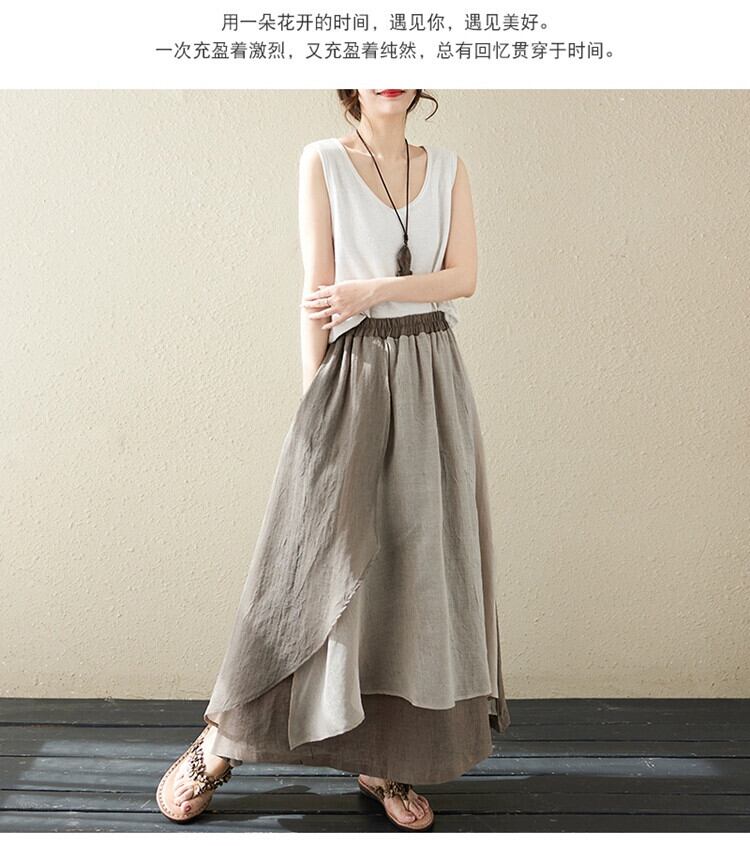 クリアランスブランド牛グッズカウンター最終在庫レディース夏薄手二層綿麻スカート不規則リネン大きな裾スカート コットン サマー 夏物 sine18721471130