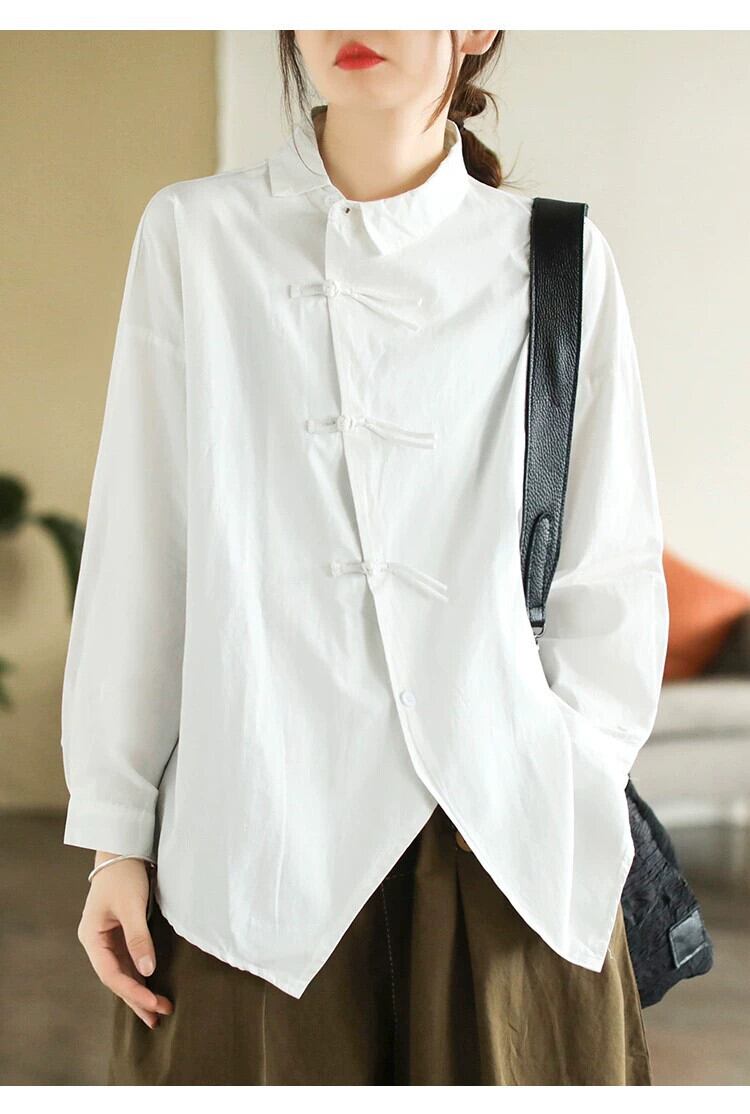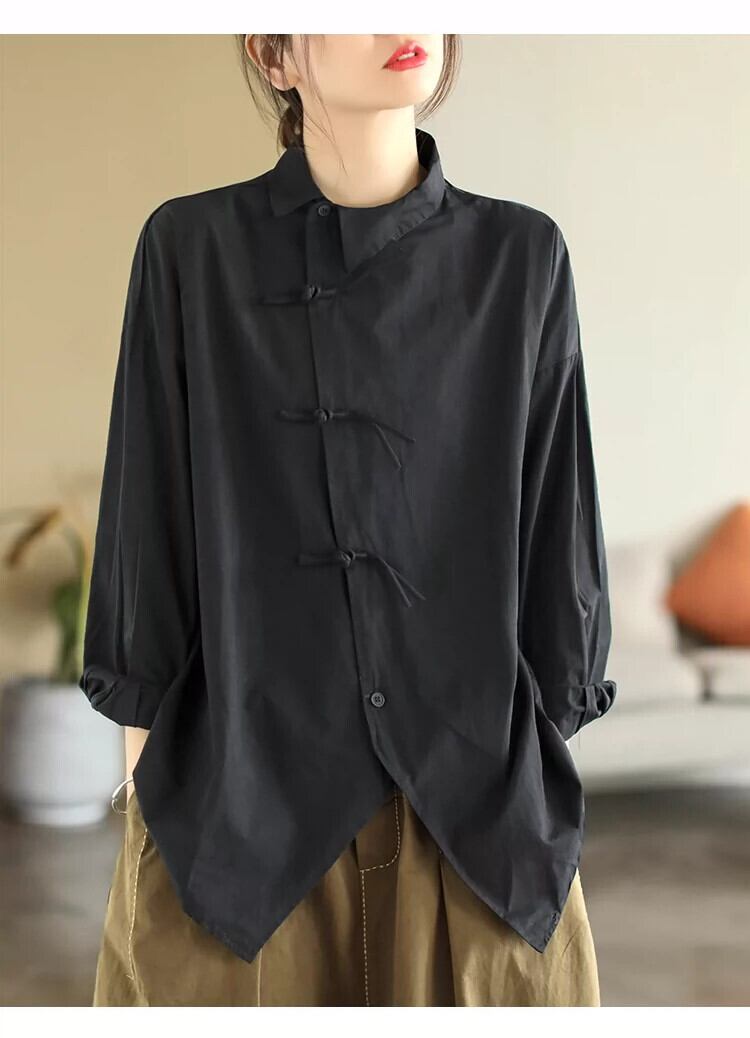 永貿易輸出ビッグブランドテール商品撤退中国風斜めボタントップ女性の緩い不規則な黒の長袖シャツ ロング ブラック sine21483868453