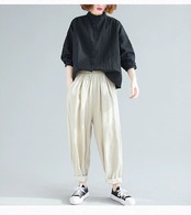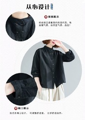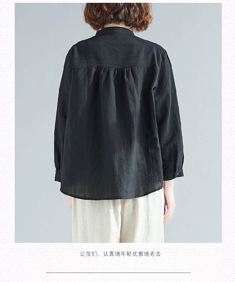 文学プラスサイズの女性の長袖リネンシャツ、女性の春と夏のルーズなスタンドアップカラーの無地のアインスタイルの不規則な綿とリネンのトップ ロング コットン 大きめサイズ スプリング 春物 サマー 夏物 ソリッドカラー sine92937463540