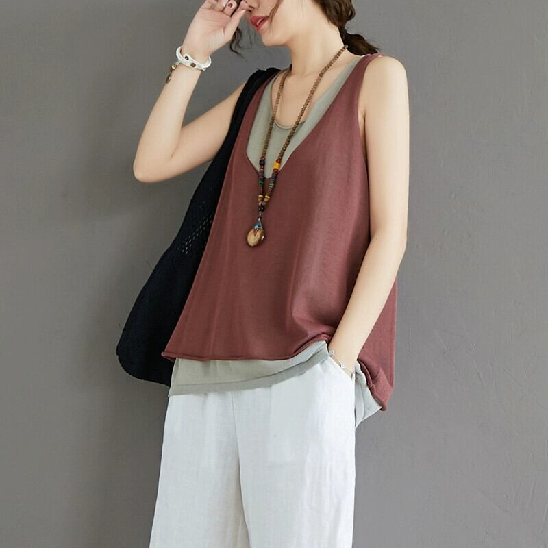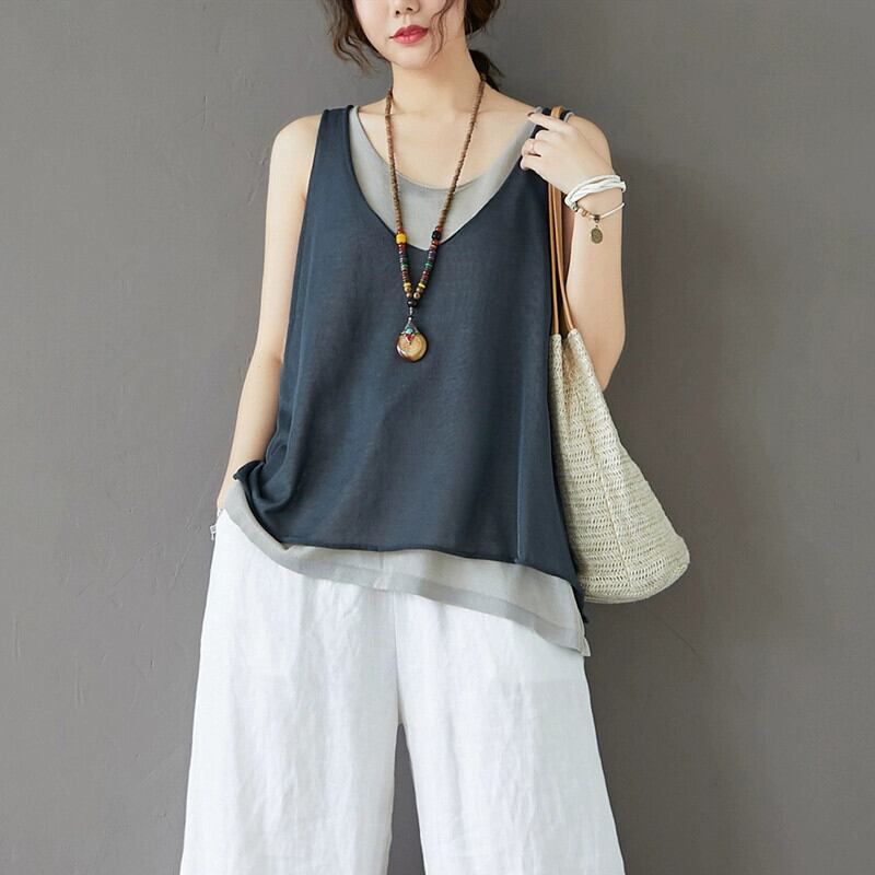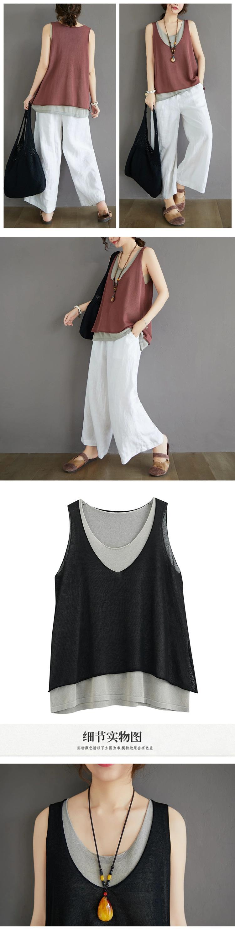 2021 新しい夏のスタイル緩い大きいサイズ脂肪ミリメートルフェイクツーピース通気性綿とリネンベストニットサスペンダー Tシャツ女性 コットン 大きめサイズ サマー 夏物 sine41405243472