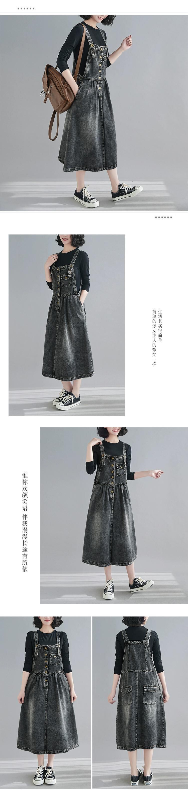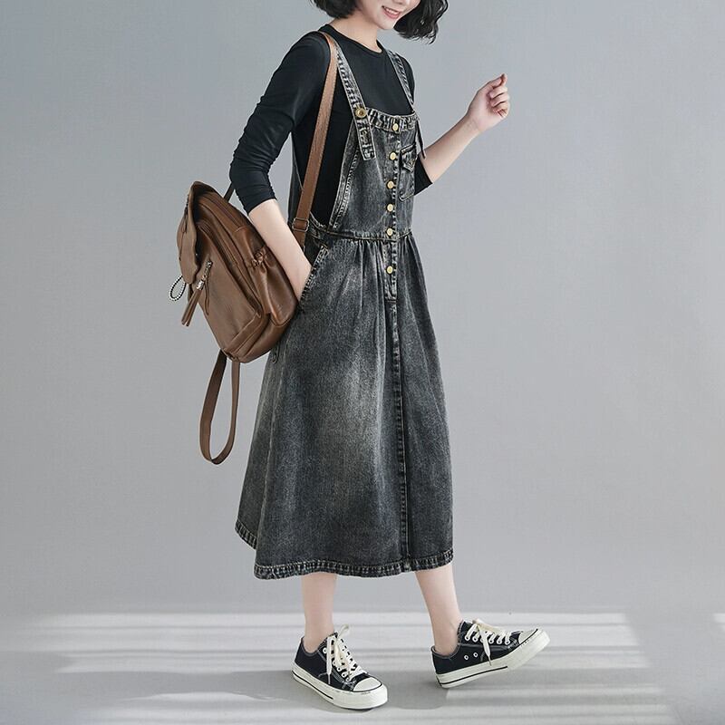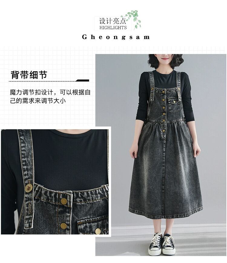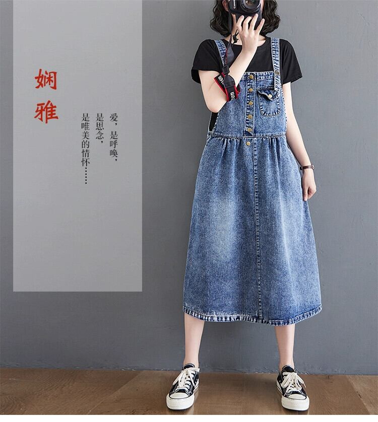 文学プラスサイズの女性のデニムサスペンダースカート春夏 2021 ルーズオールドスタイル隠し肉アウターサスペンダーミドル丈スカート 大きめサイズ スプリング 春物 サマー 夏物 sine96220604404