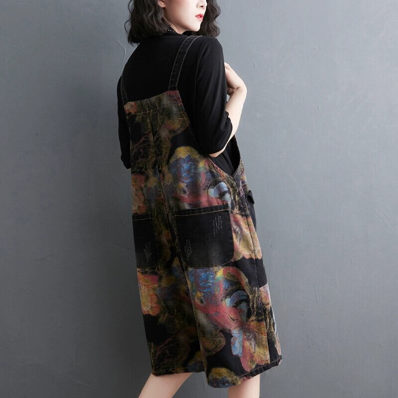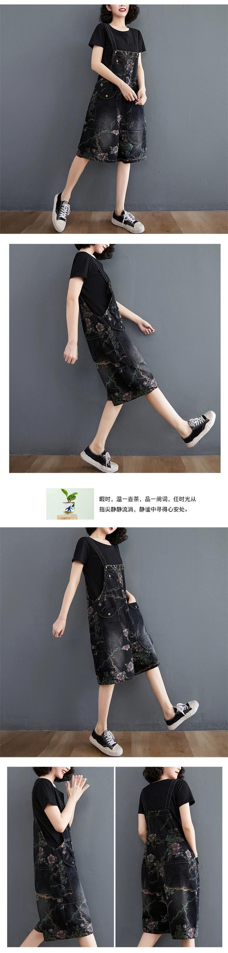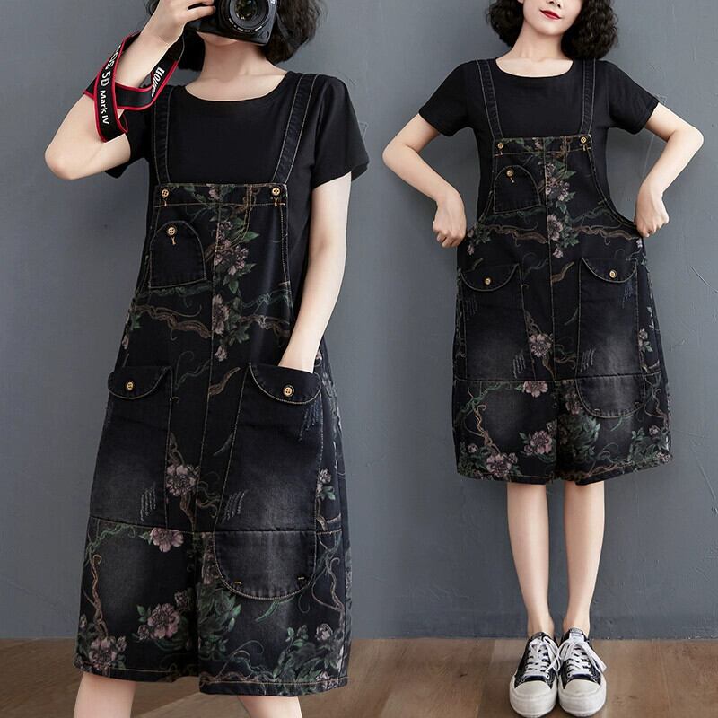 老化防止デニムオーバーオール 2022 夏の新しいスタイルのプリントポケットワンピース 5 点プラスサイズの女性のカジュアルワイドレッグパンツ 大きめサイズ サマー 夏物 sine48943025732