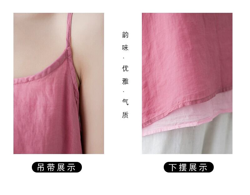 綿とリネンのベスト女性夏文学ルーズ無地インナーウェア薄型スリムカジュアルフェイクツーピースサスペンダー Tシャツトップ コットン サマー 夏物 ソリッドカラー sine10197640041