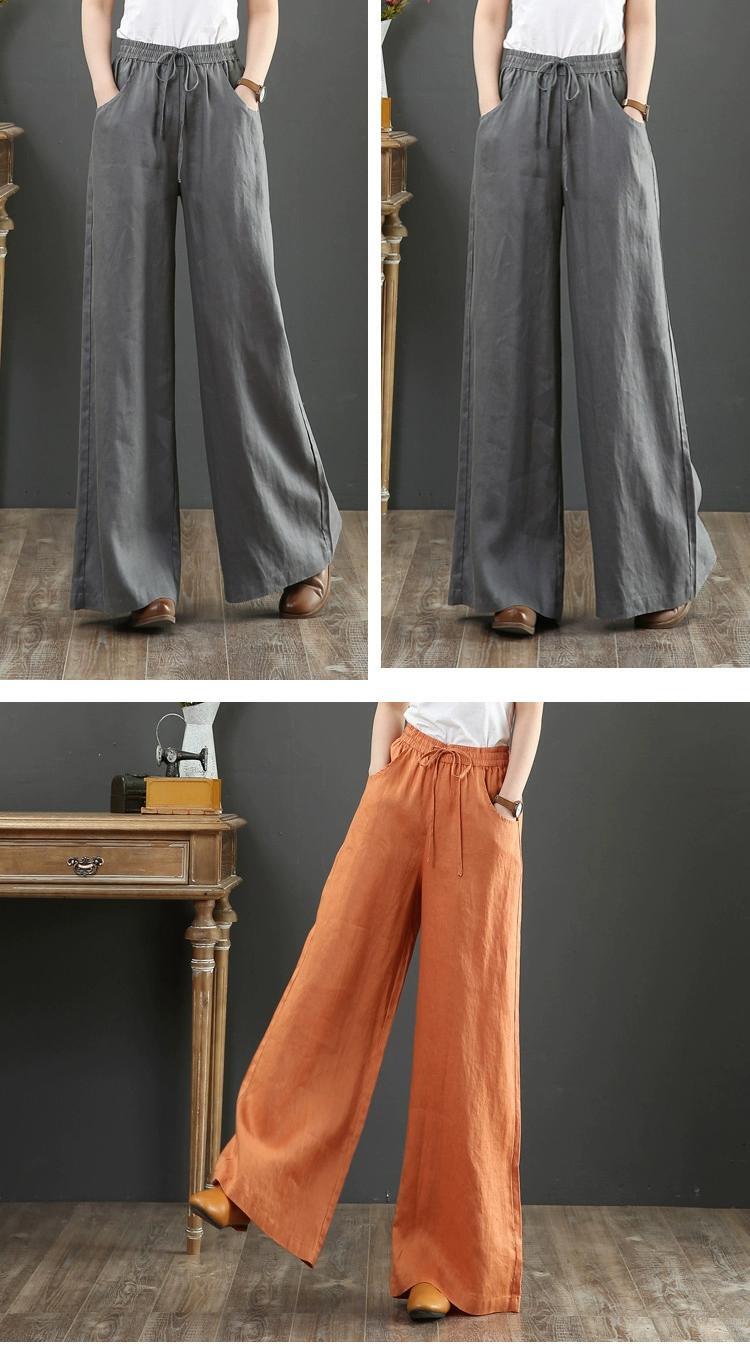 コットンとリネンのワイドレッグパンツの女性の夏の新しいルーズな大きいサイズの脂肪mm巾着ワイドレッグカジュアルリネンストレートパンツ 大きめサイズ サマー 夏物 sine6330543669